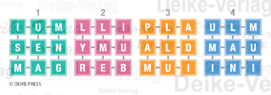 Finden Sie den richtigen Anfang, und die neun Buchstaben der Rategitter ergeben jeweils ein Lösungswort, das schlangenförmig zu lesen ist.