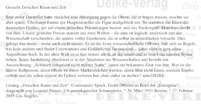 Commander Spock (Personenrätsel) KW 1026