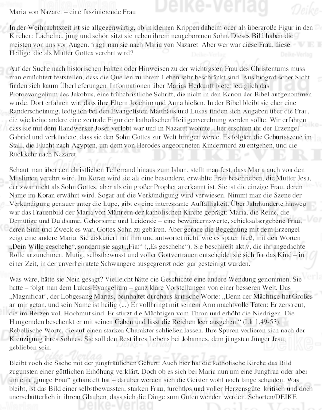 In der Weihnachtszeit ist sie allgegenwärtig, ob in kleinen Krippen daheim oder als übergroße Figur in den Kirchen: Lächelnd, jung und schön sitzt sie neben ihrem neugeborenen Sohn. Dieses Bild haben die meisten von uns vor Augen, fragt man sie nach Maria von Nazareth. Aber wer war diese Frau, diese Heilige, die als Mutter Gottes verehrt wird?