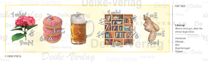 Worte sind gut aber Hühner legen Eier - Rebus KW 1423